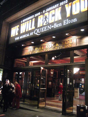 Here’s my quick review of the play/musical “We Will Rock You”. If you are a fan of Freddie Mercury, the band Queen and love a great comedy/musical then this is the play for you! The premise is interesting! In our present day of increasing technology, the plot starts in the future where real instruments and Rock and Roll is banned (AI’s Simon Cowell was even mentioned! :). There is a character called Galileo Figueroa :) who plays the dreamer and he hears these lyrics in his head. And he and the Bohemians (aka the “Resistance”) join forces to try to revive “real” Rock-n-Roll and full fill an ancient promise! They mention rock and roll greats throughout the play and there was even one poignant moment while the song “Only the Good Die Young” when they mention all the great artists of our time who have since passed away. Bob Marley, Elvis, John Lennon, Jimmy Hendrix, Freddie Mercury and I loved how they also included Michael Jackson. By the end of the show, you will find yourself singing along with “We are the Champions” and clapping to the beat of “We Will Rock You”! They are playing here in Edinburgh until January 4, 2010 and then they will be moving on to London.